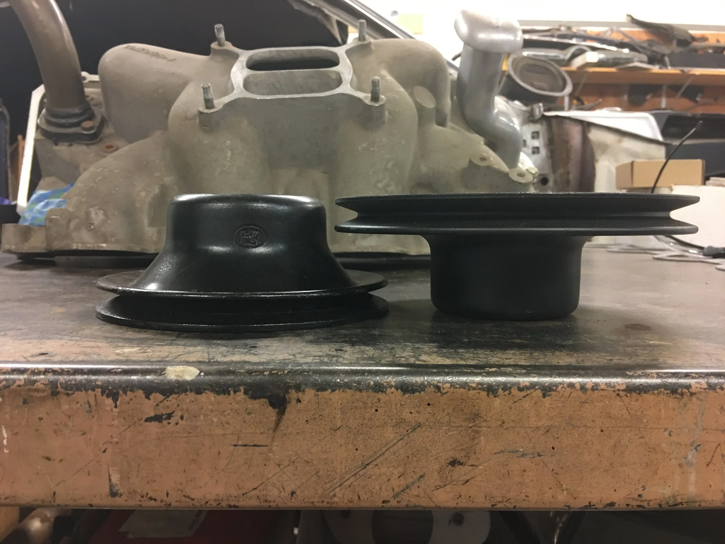 I had the pulley from the 302 engine and it was way too deep. After that it was some trial and error with eBay finds.
