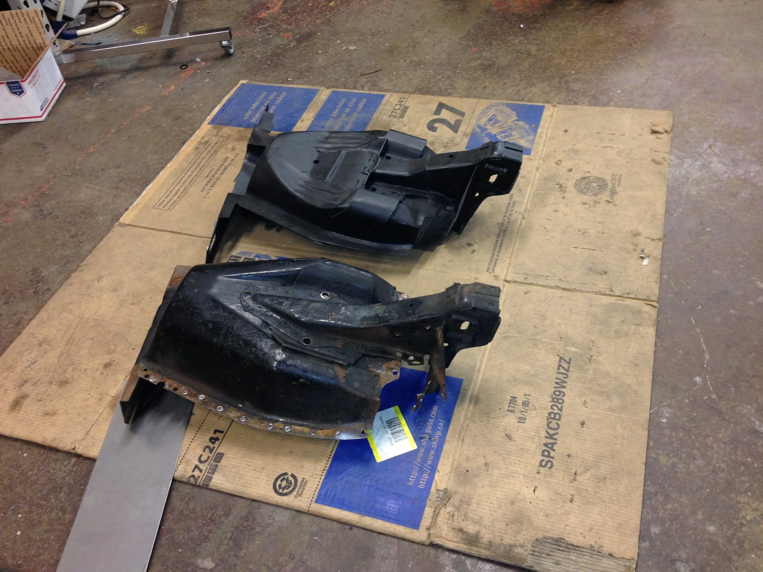 So with the aprons replaced on the right side, I wanted to see how the new tower looked in the car so I started work on removing the right shock tower.