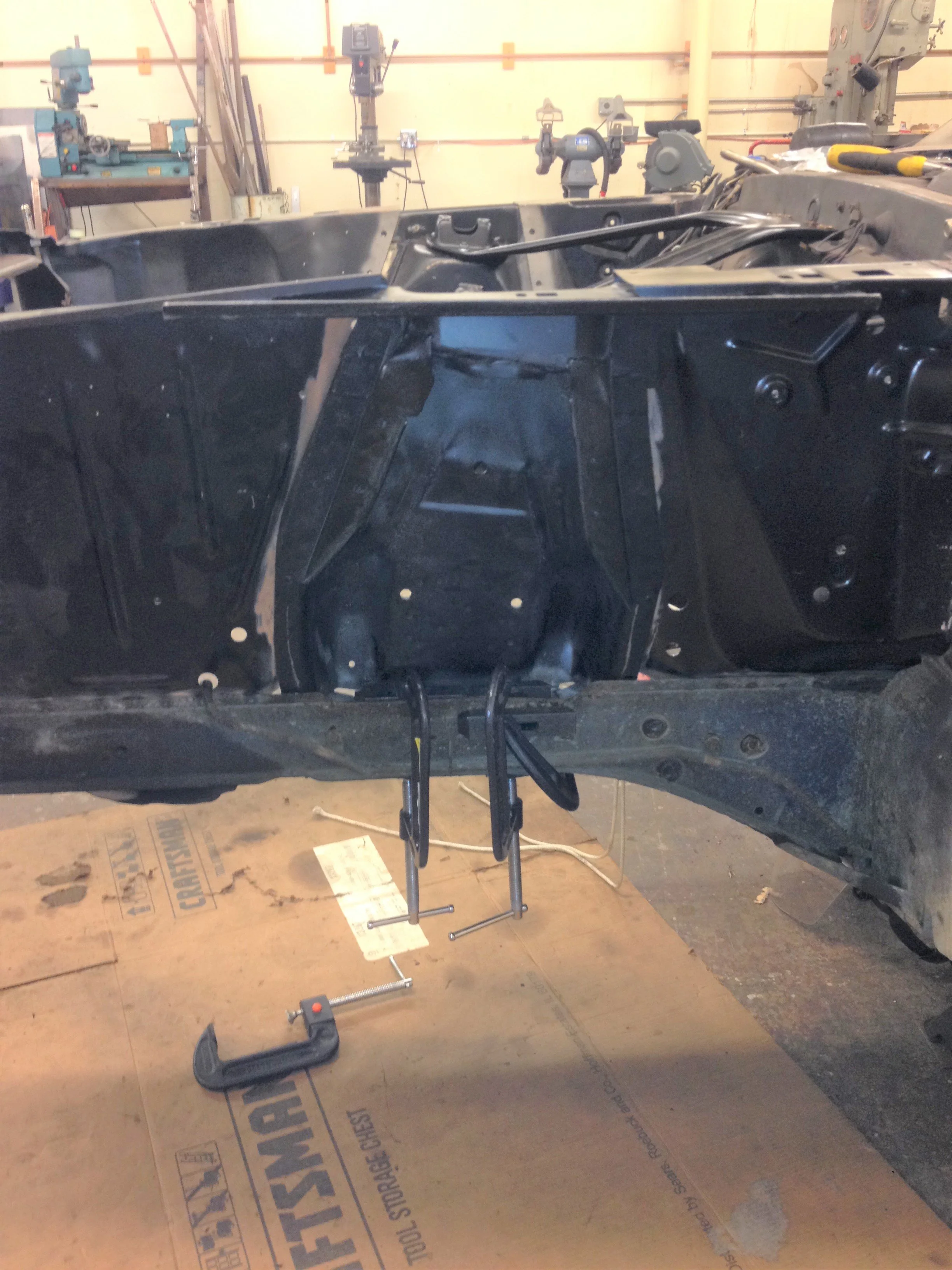 I find various holes and notches on the towers that seem to coincide with holes in the frame. I’m trying to line things up hoping to crack the code on where these things want to be. After spending hours, even days taking measurements and comparing the left to the right, I finally get the idea to get a hold of Kevin Manley and find out what information he can give me. I end up talking to Kevin’s shop foreman and the answer is so simple. Bolt the export brace to the towers and then bolt the brace to the cowl. After that it’s a simple matter to clamp the towers down to the frame and then weld everything into place.